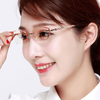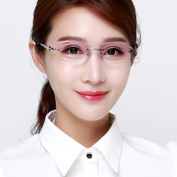 近视眼镜女无框眼镜架时尚平光紫色眼镜框金属板材成品眼镜58075