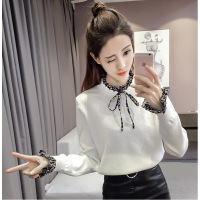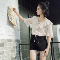2017新款短袖雪纺衫女夏韩版宽松百搭学生小清新荷叶领系带喇叭袖雪纺上衣