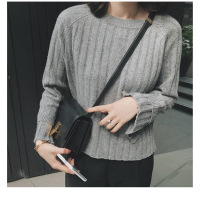 秋季韩版新款袖口破开高腰喇叭袖圆领套头毛衣针织衫上衣女