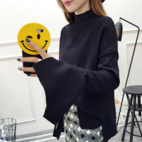 珂依舍2017秋装新款2017秋装新款韩版宽松套头毛衣喇叭袖冰丝针织打底衫长袖上衣