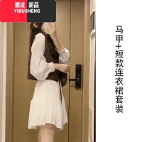 YIBUSHENG早春季2024新款长袖连衣裙收腰显瘦荷叶边法式V领裙子两件套装女