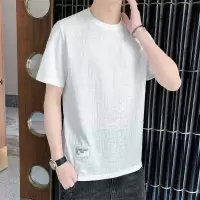 男装夏季新款男士短袖T恤港风提花布条纹直筒圆领潮流休闲打底衫