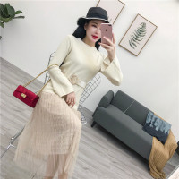 冬装新款套装女韩版喇叭袖绑带收腰针织衫高腰网纱半身裙套装裙