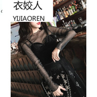 衣姣人(YIJIAOREN)女装韩版早春新款时尚套装女名媛性感丝绒小吊带透视亮丝打底衫钉珠网纱半身裙三件套裙黑