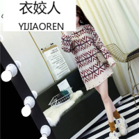 衣姣人(YIJIAOREN)装韩版学院风甜美套裙2018春季新款撞色亮丝几何菱形中长款毛衣加厚淑雅连衣裙