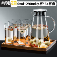 三维工匠北欧冷水壶可高温玻璃防爆大容量凉水壶套装家用果汁扎壶凉开水杯 大号冷水壶+6直身杯+杯架