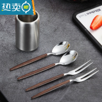 敬平北欧304不锈钢水果叉套装甜品勺子 家用水果签果插儿童可爱小叉子 五件套[银色筒+胡桃木水果叉+甜品勺](