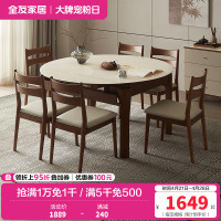全友家居现代简约实木脚吃饭桌子客厅可伸缩变圆微晶石餐桌