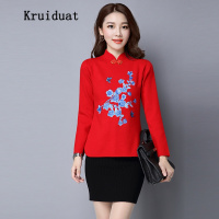 Kruidvat 奈琴尔秋冬季新款韩版针织衫女大码宽松旗袍领短款毛衣绣花打底衫M9