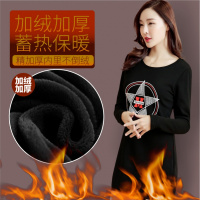 冬款加绒加厚长袖修身打底衫女韩版大码胖MM中长款T恤连衣裙