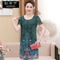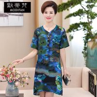 默蒂梵2017新款夏装中老年女装桑蚕丝连衣裙短袖大码真丝裙子中年妈妈装