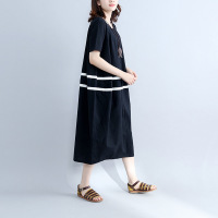 200斤胖mm显瘦文艺范加肥加大码女装印花条纹棉麻夏装连衣裙短袖