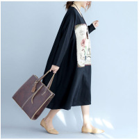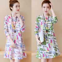 2017秋装新款加大码长袖森女裙子微胖减龄女装印花胖mm棉麻连衣裙