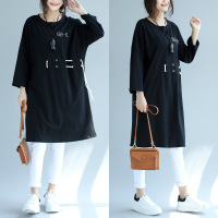 秋装胖mm加肥加大文艺刺绣字母抽绳中长款九分袖大码女装连衣裙潮