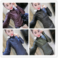 薇侣2017新品大码女装秋冬高领打底衫显瘦弹力皮小衫百搭长袖Tt恤女
