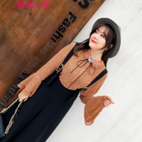 喇叭袖雪纺小衫2018春夏装新款韩版大码女装显瘦蕾丝衫