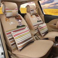 汽车座套别克昂科威凯越荣御大众桑塔纳朗行朗逸四季亚麻通用全包座椅坐垫套雅米色豪华版