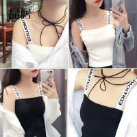 字母吊带背心短款夏季针织露肩小女生T恤内搭外穿打底衫2018新款