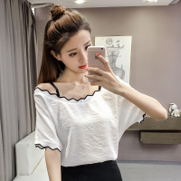 夏季新款修身内搭方领短袖T恤女高腰短款露脐打底衫上衣女装