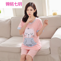锦铭七玥夏季短袖全棉孕妇哺乳睡衣猫咪产妇月子服短裤套装哺乳家居服批发