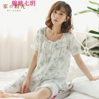 锦铭七玥时光 春夏纱布月子服孕妇短袖中裤居服产哺乳睡衣套装