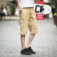 [1件5折价:79.5]美特斯邦威黑色工装中裤男夏季宽松多袋休闲男士五分裤
