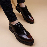 YDL尖头皮鞋蛇皮纹内增高红色鳄鱼纹正装男鞋子加厚鞋底软面男上班小码鞋美发师休闲