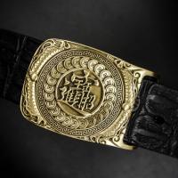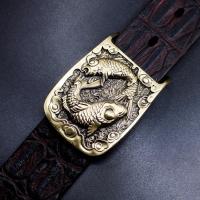 年年有余头层牛皮腰带男士手工高端鳄鱼纹皮带纯铜板扣TP014