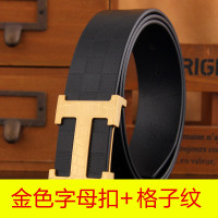 男士酷奇皮带鳄鱼纹H平滑扣纯铜腰带青年韩版时尚百搭ckpk卡地亚