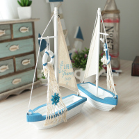 地中海风格木质帆船家居装饰摆件工艺品 手工帆船模型家居装饰品