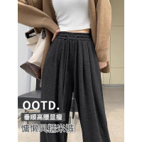 深灰色糯米裤女秋冬季加厚小个子休闲软糯垂坠感高腰阔腿加绒裤子