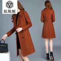 2017秋冬款呢子大衣韩版新款拼接双排扣中长款毛呢外套女