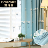 珊诗丽蓝色韩式田园风棉麻绣花飘窗窗帘成品布料客厅卧室定制落地窗