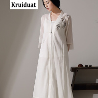 Kruidvat2017春季新款女装开衫上衣手绘薄长款外套汉服茶服B078白色