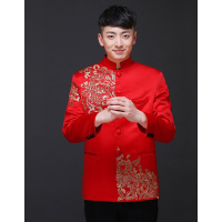禾服男装中式婚礼新郎长袖秀禾服男士唐装中山装红色结婚礼服古装喜服新款中式新郎装绣花男上衣