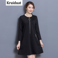 Kruidvat2017新款春装中长款大码女装胖妹妹打底衫连衣裙N023黑色