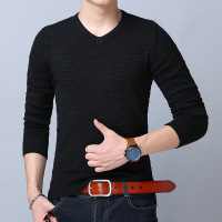 男士毛衣冬季v领套头针织打底衫长袖T恤中年爸爸装加厚男装潮黑色