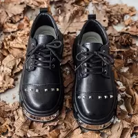 秋冬季上新款铆钉皮革纯色男士上班通勤皮鞋舒适透气休闲款懒人鞋