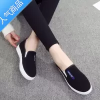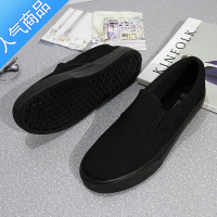 SUNTEK夏季女士布鞋懒人鞋女全黑休闲鞋纯黑薄底一脚蹬女鞋黑色帆布鞋男