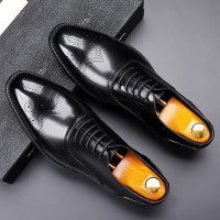 男士商务正装皮鞋真皮百搭透气头层牛皮布洛克花英伦结婚新郎鞋