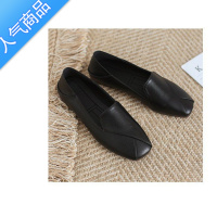 SUNTEK牛津软底真软皮单鞋女平底懒人鞋一脚蹬乐福鞋黑色工作鞋小皮鞋子