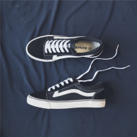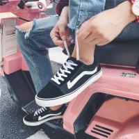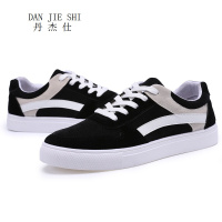 2017新款春季黑色男鞋帆布鞋平跟系带运动休闲鞋拼色耐磨滑板鞋潮流系带