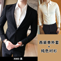 黑色男士休闲小西装男韩版修身商务西服英伦青年外套上衣潮X603黑色加村色衬衫