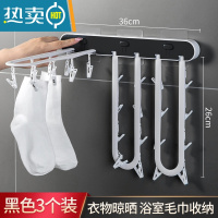 敬平免打孔折叠晾衣架壁挂式夹子晾衣夹阳台卫生间晒内衣内裤袜子器 黑色3个装♥多件更实惠 1个