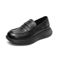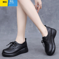 聚范厚底深口单鞋女系带平底中年妈妈鞋松糕底舒适坡跟皮鞋女