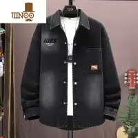 YANXU2021秋季黑色牛仔外套男韩版宽松学生潮牌复古百搭bf工装夹克上衣
