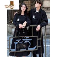 YANXU2023休闲黑色情侣装风衣双排扣大衣中长款外套学生男女宽松