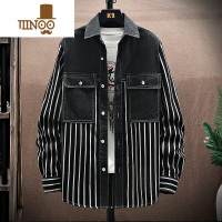 YANXU条纹牛仔外套男士潮牌工装宽松夹克中学生潮流黑色长袖衬衫