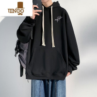 YANXU黑色连帽卫衣男士潮流牌ins刺绣休闲运动学生上衣外套