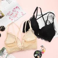 前扣美背文胸套装下厚上薄性感小胸夏季光面内衣蕾丝美背胸罩黑色